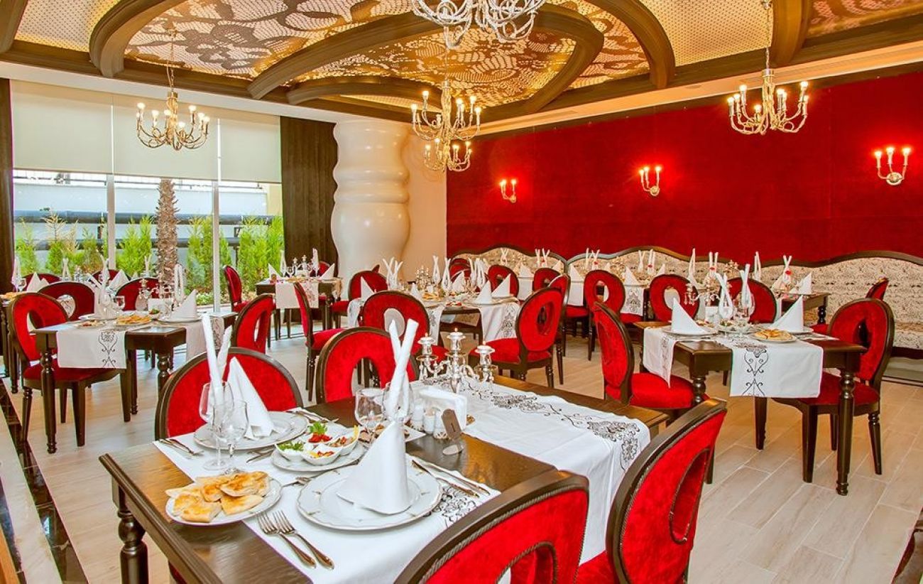 Изхранване: All Inclusive - включва закуска, също и за късно ставане, обяд, леки закуски (на снек бар), кафе и торта, вечеря и среднощна закуска, алкохолни и безалкохолни напитки местно производство. Еднократно за престоя е включено посещение на А ла Карт ресторант ( с предварителна резервация ). * Вносни, бутилирани, маркови луксозни алкохолни и безалкохолни напитки и прясно изцедени плодови сокове са срещу допълнително заплащане.