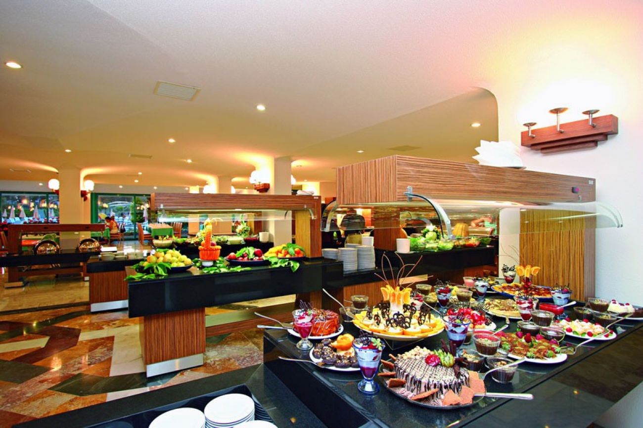 На територията на хотела: Сред съоръженията и удобствата на хотела са лоби, лоби бар, асансьор, основен ресторант, 2 A La Carte ресторанта (италиански и рибен), снек ресторант на плажа, кафенета, 3 бара, дискотека, интернет кът, зала за игри, магазини, коли под наем, телевизионна зала, библиотека, медицинско заведение (включително лекар и медицинска сестра), център за красота, фризьор, вътрешен отопляем плувен басейн, голям открит плувен басейн, 2 водни пързалки, отделен детски басейн, тераса за слънчеви бани, фитнес зала, СПА център.