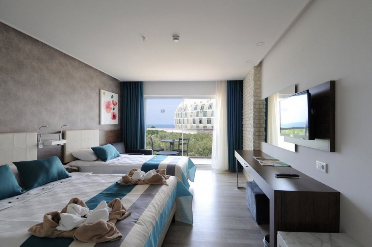 Хотелът е разположен на самия плаж, в района на Алания, на 105км. от летище Анталия,на територия от 35 000кв.м.