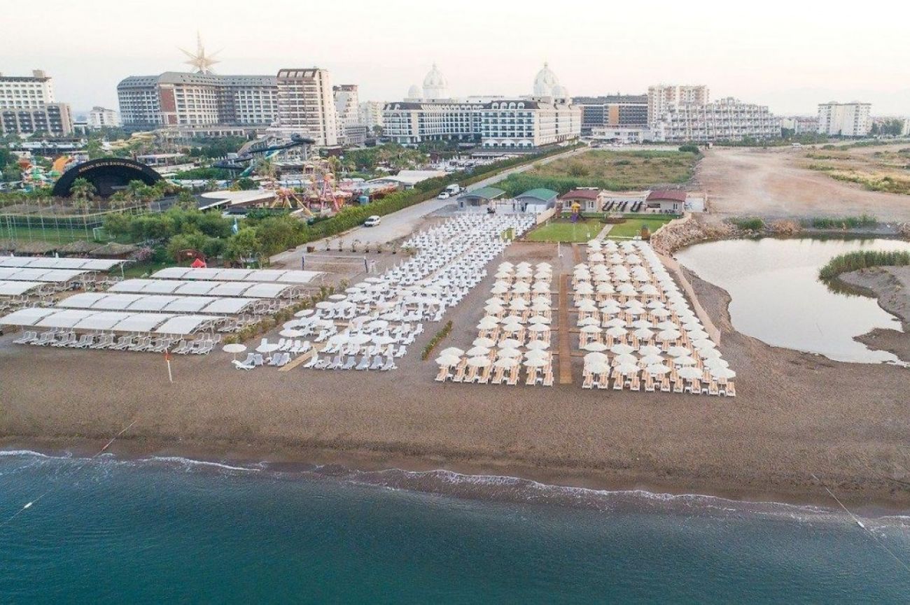 Собствен пясъчен плаж, намиращ се на 750 метра от основната сграда на хотела. Има редовен безплатен шатъл. Дължината на плажа 50 м. Кърпи и шезлонги на плажа и при басейна - безплатно.