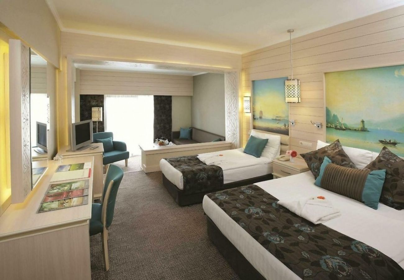 Разположение: Хотелът е разположен на 29 км от летището и на 36 км от центъра на гр. Анталия, на 2 км от селището Кадрие, на брега на морето. Построен е през 1998 г., обща площ 147 000 м2, последно реновиран през 2011 г.
