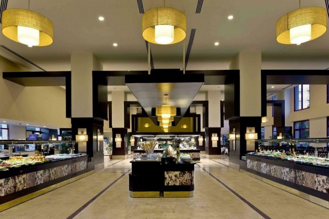 На територията на хотела: Основен ресторант (има диетично меню), 4 ресторанти a la carte (османски, италиански, азиатски, барбекю - с предварително записване; за целия престой се полага едно посещение на избран ресторант - безплатно), 3 бара, дискотека, 2 открити и 1 закрит басейн, 5 пързалки за деца, Спа център, магазини, химическо чистене, фризьорски салон, 13 конферентни зали.