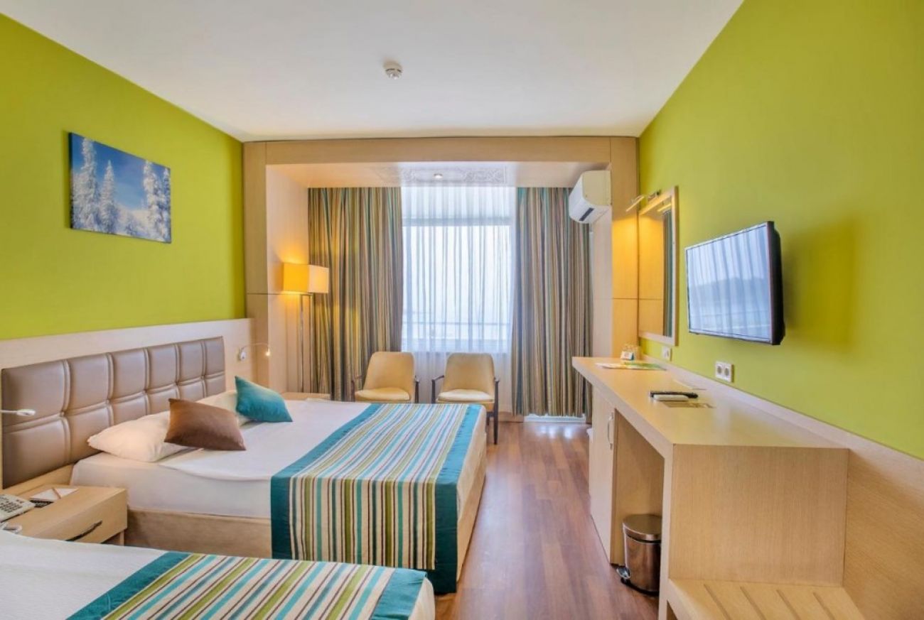 В стаите: Хотелът разполага със стандартни и фамилни стаи, като всички са с балкон или тераса. Фамилните стаи представляват апартаменти с 2 или 3 отделни и комфортни спални и различни комбинации на легла.