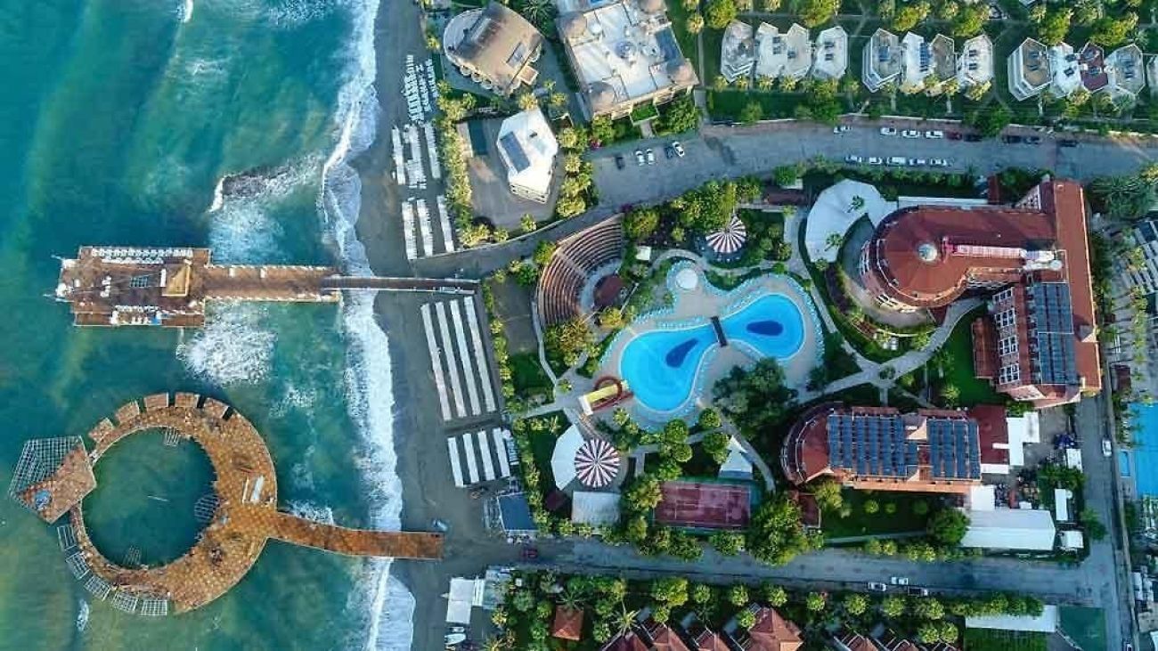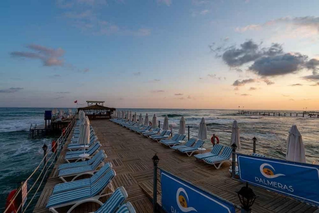 PALMERAS BEACH HOTEL 5* е популярен сред българските туристи хотел, разположен в курортната зона на Конаклъ, на 109 км от международното летище на Анталия, на 13 км от градския център на Алания, на брега на морето.