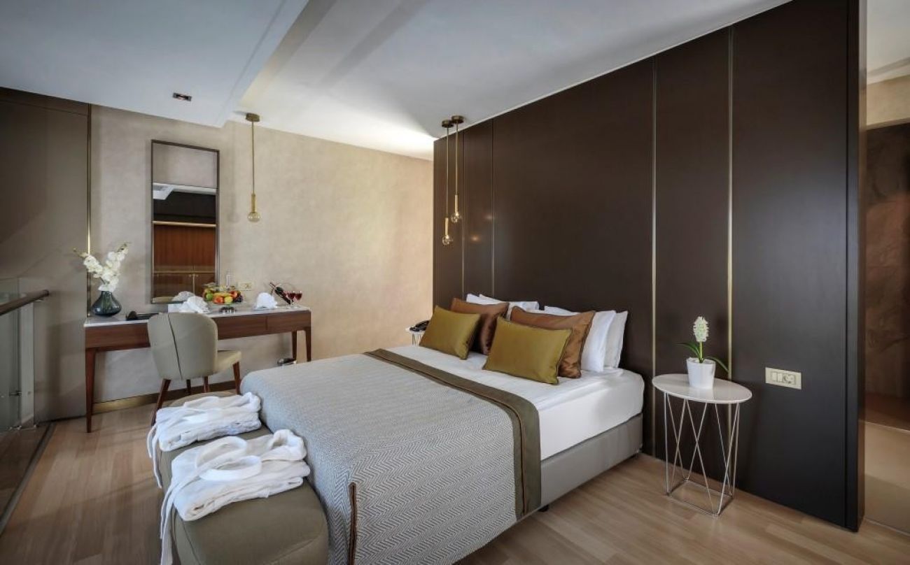 В стаите: Хотелът се състои от една основна 8 етажна сграда. Общ брой стаи – 362. Всички стаи са оборудвани с: централен климатик, ламиниран паркет, балкон, баня с душ, телефон, LCD TV, Wi-Fi (безплатно), сешоар, мини бар, сет за кафе и чай, сейф.