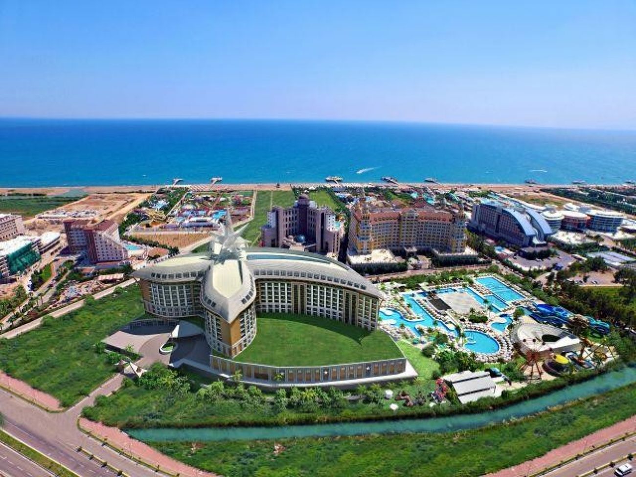 На територията на хотела: Основен ресторант, 9 а-ла-карт ресторанта (рибен, турски, италиански, средиземноморски, азиатски, суши, барбекю ресторант, мексикански, испански – срещу заплащане и с предварителна резервация, съгласно концепцията на хотела), снек ресторанти, бистро, сладкарница, food корнер, 9 бара, 4 открити и 1 закрит басейн, аквапарк, лунапарк, амфитеатър, професионални музикални и танцови вечерни програми, тематични партита(1 път седмично), дискотека, СПА център, магазини, 11 конферентни зали, паркинг.