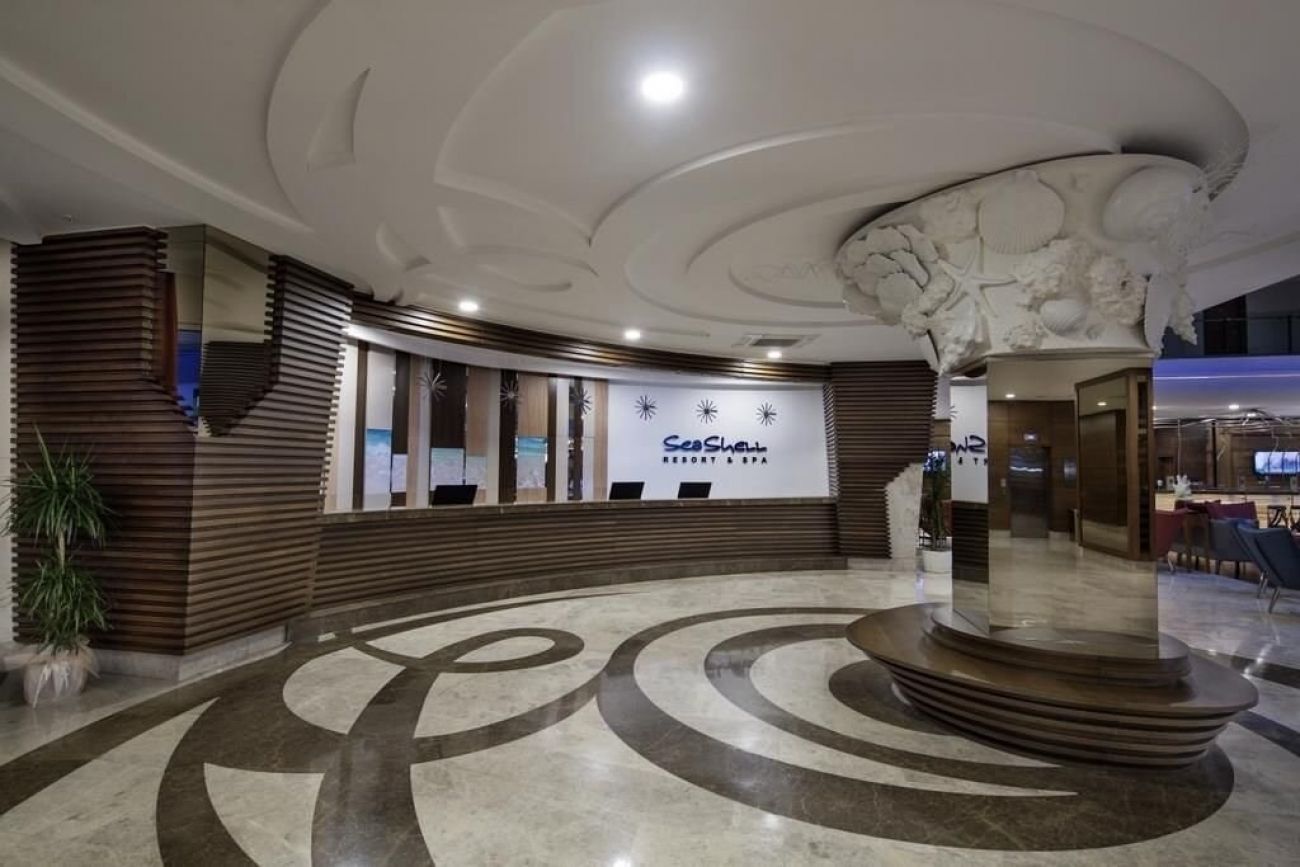 Разположение: Seashell Resort Hotel 5* се намира на 55 км от международно летище Анаталия, на 8 км от Сиде, на 12 км от Манавгат на самия бряг на морето. Хотелът е открит през 2013 г. и е разположен върху територия с обща площ от 10,500 м2.