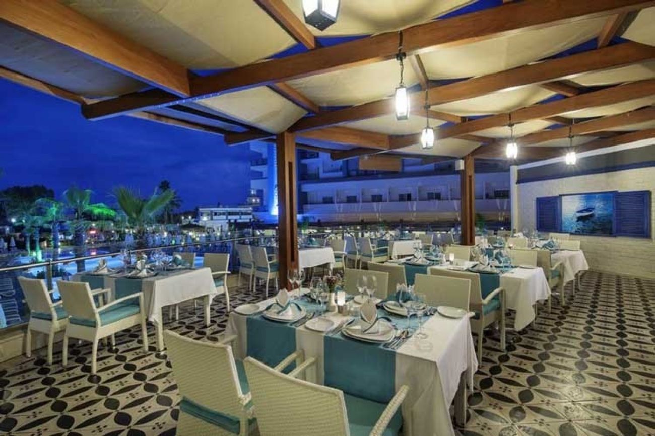 На територията на хотела: Основен ресторант, 2 а ла карт ресторанта - италиански, интернационален (веднъж безплатно посещение при седмичен престой), 4 бара (бара на басейна работи 24/7 през летния сезон, 2 външни басейна, един от които с водни пързалки, закрит басейн (с подгряване през зимния сезон, през летния сезон е затворен), фитнес зала, СПА център.