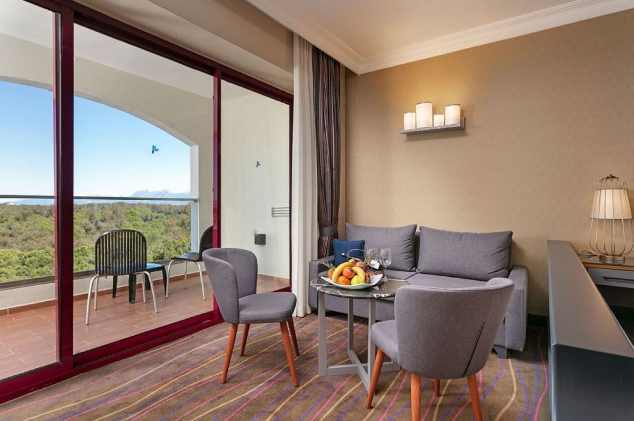 Стаи Main Building: Standard Junior Suite With Garden View (с изглед градина – 47 м2), Standard Junior Suite With Sea View (с изглед море - 47 м2), Duplex Family Suite (2 спални разположени на 2 етажа, 2 бани, изглед към голф игрище или градина - 80 м2), Terrace Suite (спалня, 2 бани, тераса с шезлонги, изглед море - 95 м2), Family Suite (2 спални, 2 бани, тераса с шезлонги, изглед море 95 м2).