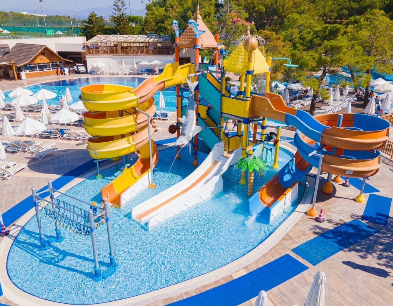 За децата: детски бюфет (само на вчеря), 2 детски басейна (открит и закрит), 11 водни пързалки (8 от тях в аквапарка), детска площадка, мини-клуб (4–12 г.), джуниър-клуб (13–16 г.), лунапарк (платено), детегледачка (платено), детска количка (платено).