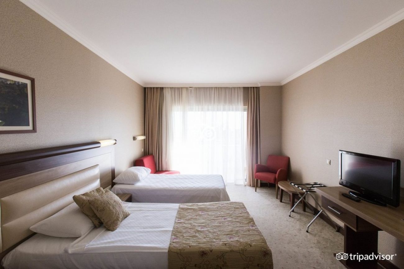 В стаите: Хотелът се състои от една основна 5-етажна сграда и тринадесет 2-етажни вили (Lake House). Всички стаи са оборудвани с централен климатик, вана, сешоар, телевизор, телефон, мини-бар (минерална вода, безалкохолни напитки и бира се зареждат ежедневно, безплатно), сейф (безплатно), под – мокет (Main building), теракот (Lake Houses), балкон или тераса, WI-FI (безплатно).