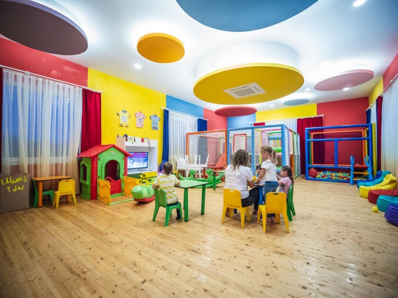 За децата: детски бюфет, детска площадка, мини клуб, детска анимация, мини дискотека, два детски басейна, детски водни пързалки.