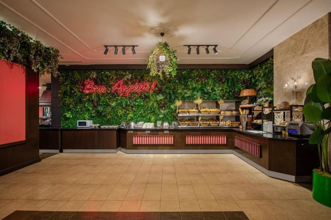 Хотела разполага с основен ресротант, 2 а-ла-карт ресторанта (платени), 4 бара, от който единия работи 24 часа, 2 открити басейна за възрасни, 2 открити басейна за деца, 2 заскрити басейна за възрастни, 1 закрит басейн за деца, вътрешните басейни работят и през зимата. За деца: детска дискотека, спортни игри, игри в басейна, мини игрален клуб (4-12г.), йога за деца, гимнастика, водна аеробика, дартс за деца, боулинг за деца, специално шоу за деца което се организира 1 път в седмицата, детско кино, занимание свързани с рисуване, анимация. Безплатни услуги: тенис на маса, WIFI, дартс, йога, аеробика, зумба, жива музика, анимациия. Платени услуги: лекарски услуги, химическо чистене, пералня, детски столчета/колички, а-ла-карт ресторанти, магазини, водни спортове, специални организации за рожден ден/сватба/ предложение за брак/ концепция за меден месец.
