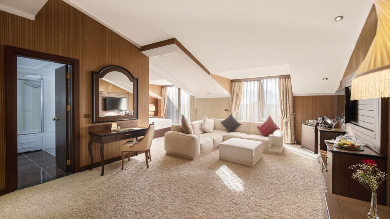 Хотела разполага общо с 334 стаи. Всяка стая е оборудвана с бяня, тоалетна, вана, телевизор, сейф (беплатно), халати и чехли за баня, сешоар, комплет с чай и кафе, телефон, безплатен WIFI, минибар. Почистване на стаите- всеки ден. Смяна на чаршафи и спално бельо- през ден.