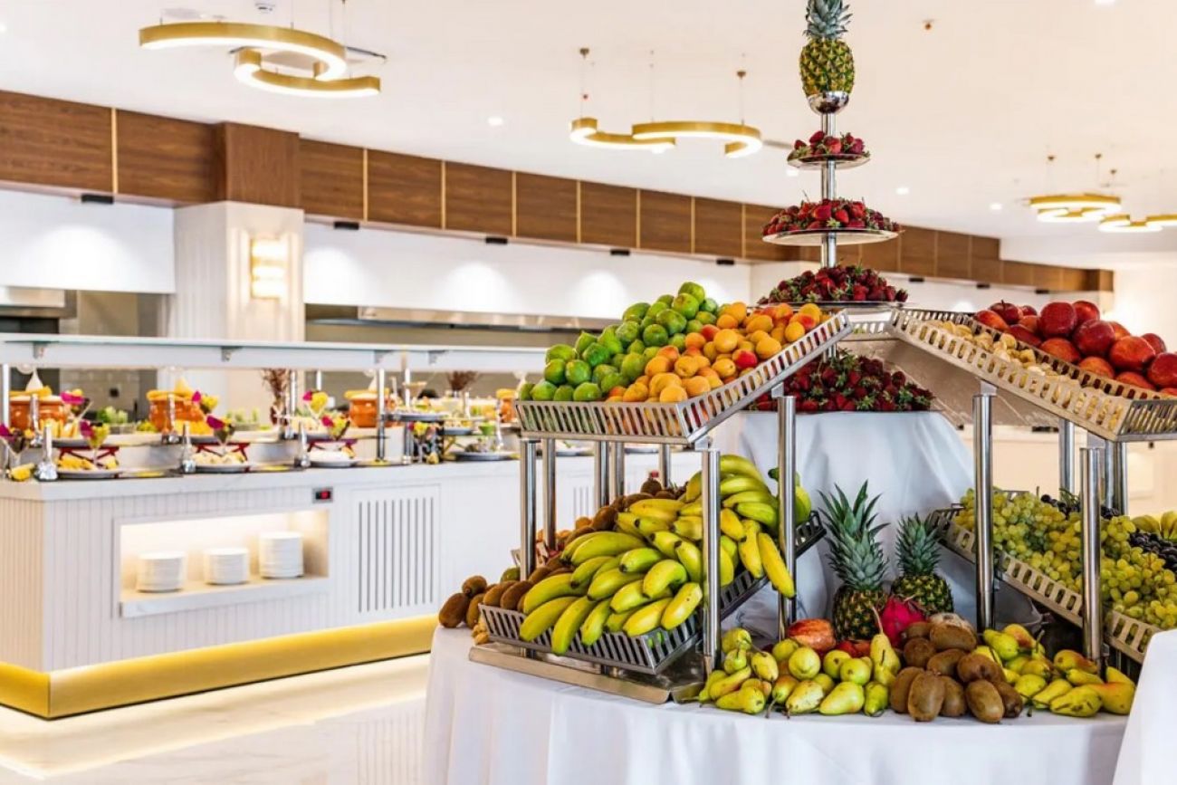 Основен ресторант, 2 а-ла карт ресторанта (рибен и турски), 5 бара, сладкарница, аквапарк, открит и закрит басейн, диско, фитнес, мини-клуб, мини-диско, анимация, СПА център, салон за красота, игрална зала, конферентна зала.