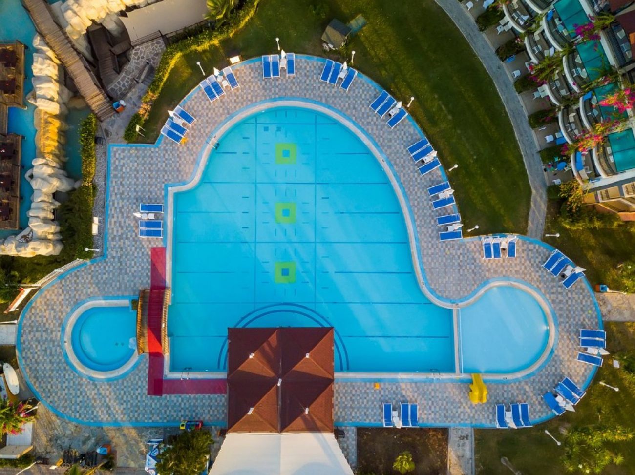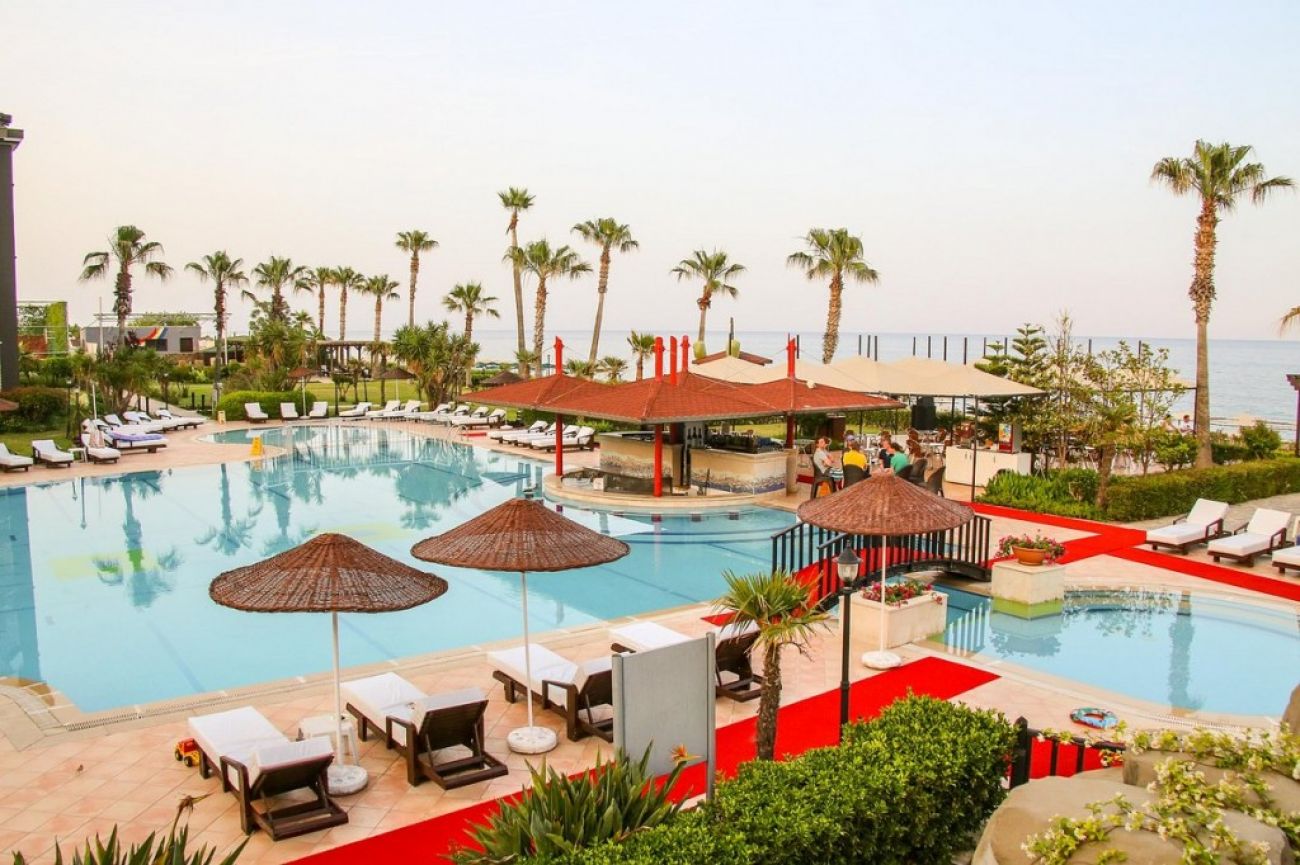 На територията на хотела: Хотелът разполага с открит басейн 356 кв.м., вътрешен басейн 106 кв.м., водни пързалки, основен ресторант, един a'la carte ресторант (рибен, 1 път седмично с резервация), 4 бара, амфитеатър, пералня (срещу заплащане), безплатен Wi-Fi в целия имот, обмяна на валута, магазин и две конферентни зали (200 кв.м. и 30 кв.м.).