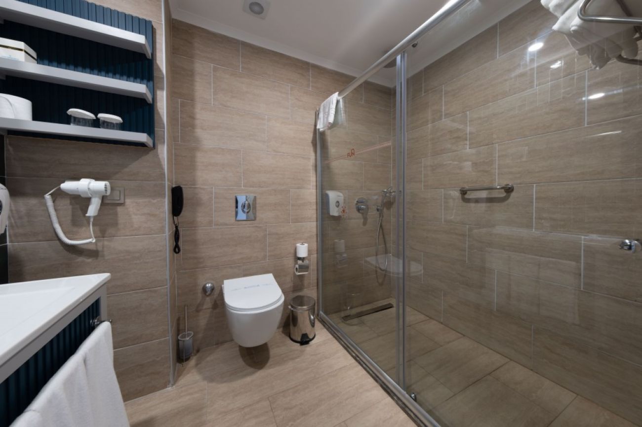 В стаите: Двойни Стандартни стаи - тип 1 - (3 стаи са обзаведени специално за нашите гости с увреждания), Максимален капацитет: 2+1 – 3 души, Размер на стаите: около 25 м², Ламиниран паркет, система за заключване с електронна карта, централна климатизация (на час) и отопление (в зависимост от сезона), LCD телевизор със сателитна телевизия и музикален канал, мини бар, сейф (наема се срещу заплащане), телефон с директно избиране, Wireless – Интернет (безплатно). Удобства за баня: телефон, сешоар и душ.