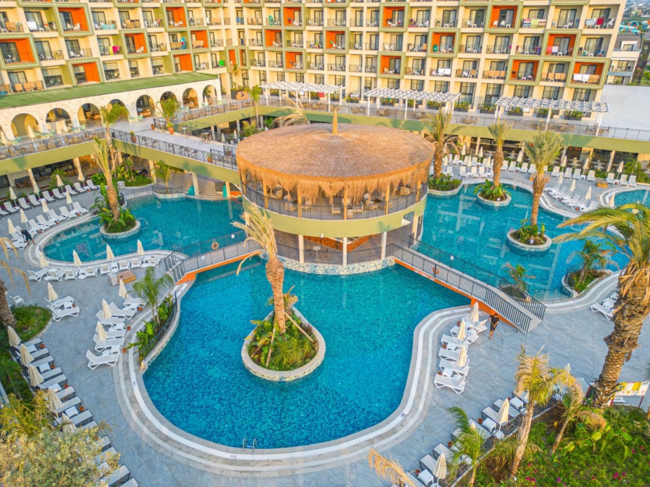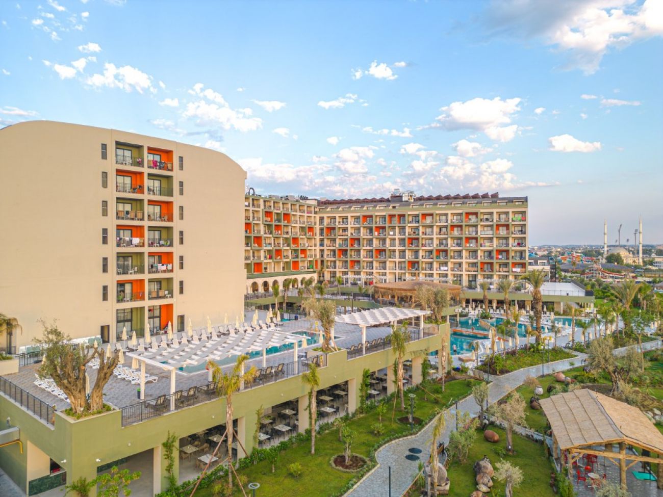 На териорията на хотела: лоби бар, основен ресторант с вътрешен двор, три а ла карт ресторанта (в зависимост от наличността, изисква се резервация) различни барове, магазини, фризьорски салон, закрит плувен басейн ( само през зимния сезон) и модерно оборудвания уелнес център. В цялата територия на хотела е осигурена безжична интернет връзка (WiFi). В градината на хотела - сладководни басейни, гигантски аквапарк с много различни пързалки за малки и големи.