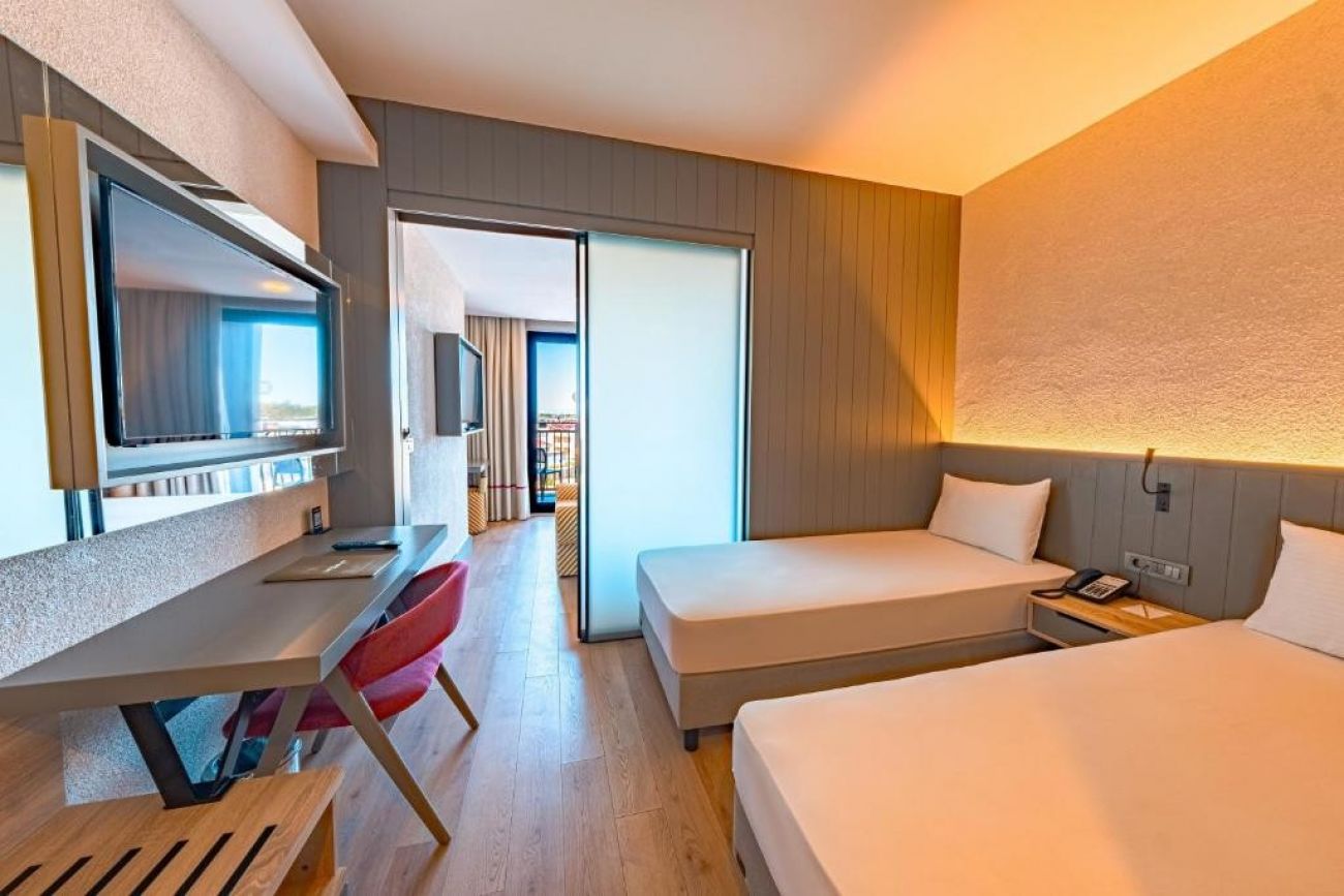 В стаите: Хотелът се състои от една основна сграда с 4 срещуположни корпуса на по 4 етажа, всяка от тях с асансьор. Хотелът разполага с общо 399 стаи разпределени в няколко различни категории, като част от стаите са само за възрастни 16+. Стаите са оборудвани с фотьойл, маса и столове на балкона, чехли, телефон, сензор за присъствие, минибар / 1 зареждане на ден (безплатно), паркет в стаята, сешоар, Wi-Fi/Безплатен (стая - обща зона), kлиматик (топло и студено - централен), LED телевизор, Уред за чай и кафе, дигитален сейф.