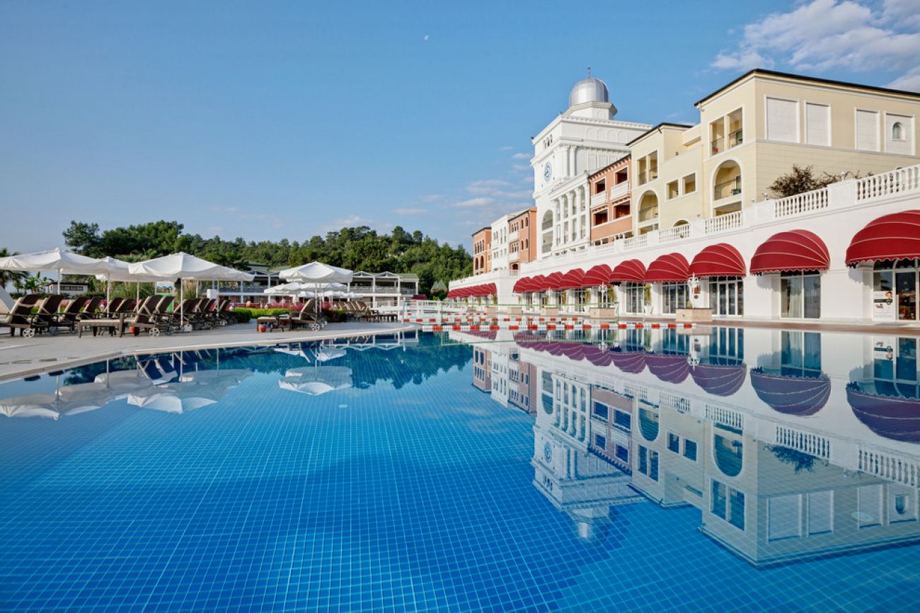 Състои се от три луксозни сгради (Портофино - 3 етажа, Капри - 3 етажа, Венеция - 6 етажа), 3 и 4 етажни клубни сгради (Roma и Istanbul Street) и осемнадесет двуетажни VIP вили (разположени непосредствено до морето). В тях са разпределени 718 климатизирни стаи. Те са оборудвани с телевизор, телефон, сет за кафе/чай, минибар (безплатен), сейф (безплатно), баня с душ/вана, сешоар, халат и чехли. Почистване на стаите и смяна на кърпите - всеки ден, смяна на спално бельо – 3 пъти седмично.