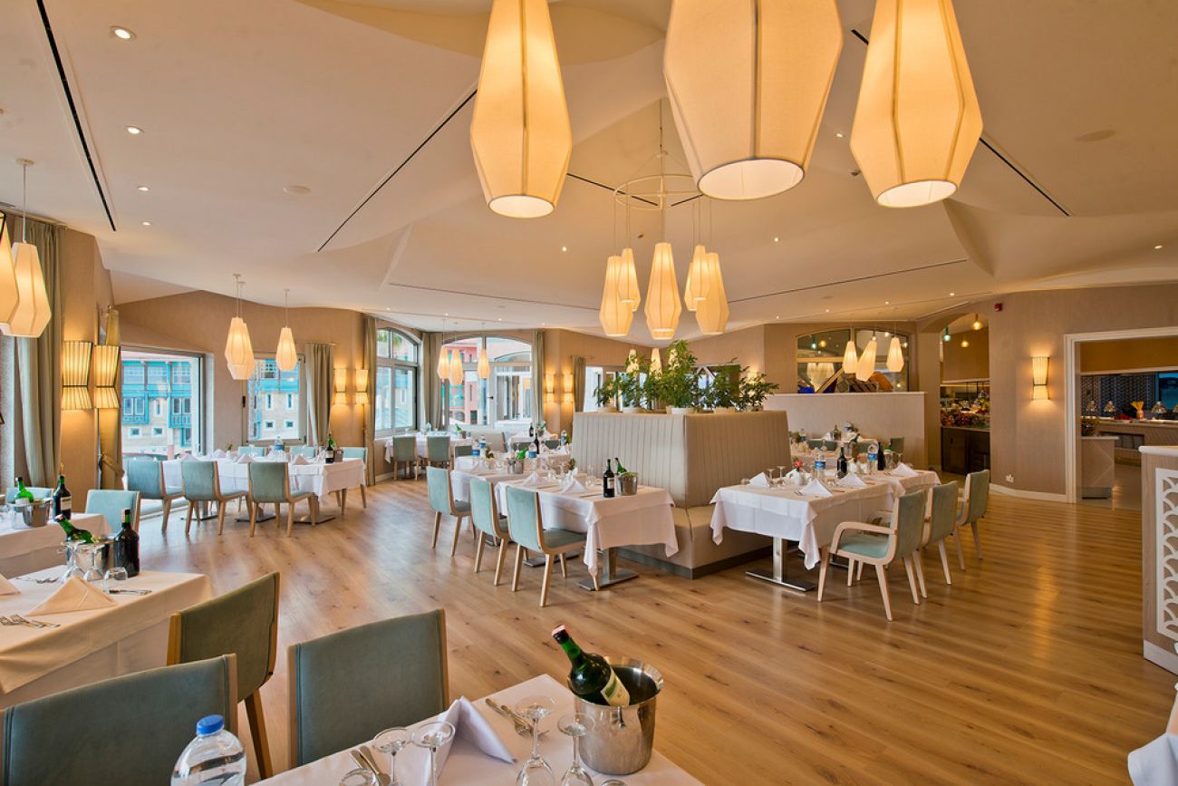 На разположение на гостите са основен ресторант Myros restaurant, Kalynda Snack House, отворен за закуски в часовете: 15:00-19:00 ч ./23:00-07:00 ч. и седем а`ла карт ресторанта: Balbura: италианска кухня, Balbura Steak House: стек ресторант, Soura: средиземноморска кухня, Sarpedon: рибен ресторант, Pinara: туреска кухня, Phaselis Modern Asya Restaurant: азиатска кухня, Teppanyaki restaurant: японска кухня.