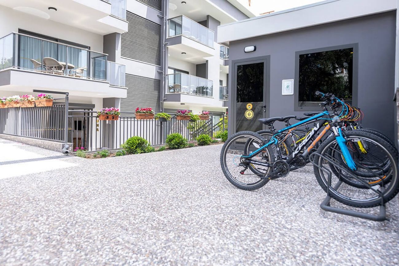 Стаи: Хотелът се състои от два блока и разполага с 31 комфортни и изискани стаи ( 50 м2 ) Почистване на стаите и смяна на хавлиите всеки ден, смяна на спалното бельо - на всеки три дни. Всички стаи разполагат са оборудвани с баня с душ, халати и чехли, сейф, сешоар, безплатен интернет, 50-инчов смарттелевизор (сателитни канали 110 канала и Netflix), кана за гореща вода, пералня, миялна машина, хладилник, микровълнова фурна, готварска печка и аспиратор, цялото кухненско оборудване, климатик, трапезна маса за 4 човека, комплект за чай и кафе (5 броя чай, кафе и мляко на прах веднъж в деня на настаняването),