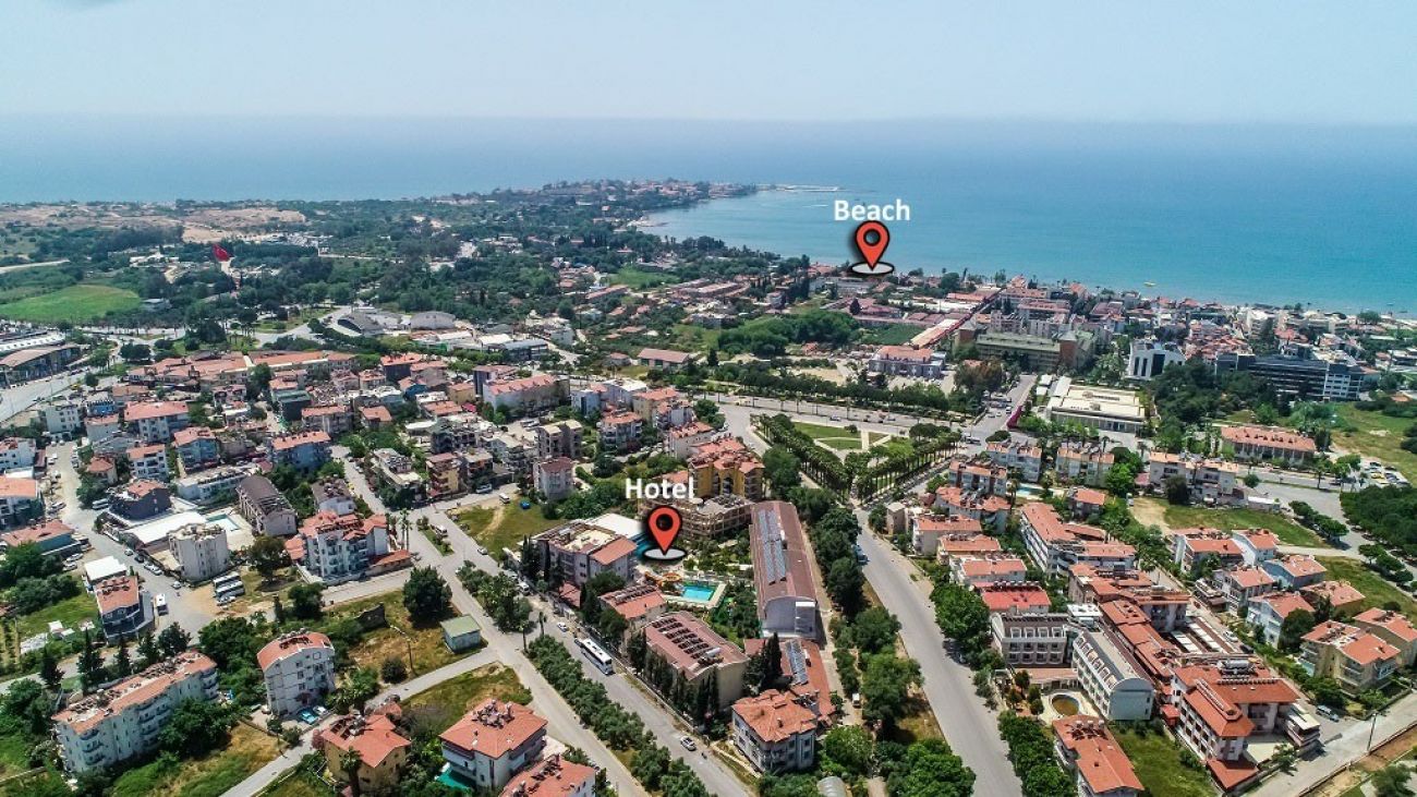 Разположение: Хотелът се намира на 1,5 км от центъра на Сиде, на 65 км от междунардоно летище Анталия и на 800 м от градския плаж на Сиде.