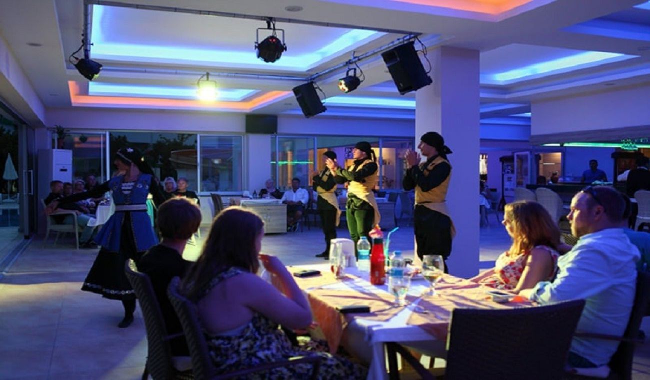 На територията на хотела: Един основен ресторант със закрита и открита част, 1 лоби бар, 1 бар до бассейна, 1 основен външен басейн, 1 басейн с пързалки за възрастни и деца, детки басейн ( обособена зона до основния басейн), малък СПА център, дискотека и шоу програма (2 пъти в седмицата), WiFi – безплатен в лоби и в ресторанта, 24 часова рецепция.