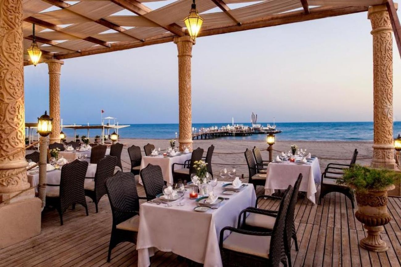 Хотелът има основен ресторант и 4 а`ла карт ресторанта: италиански "Zeythin", азиатски "Wasabi", турски "Kishnish" и средиземноморски "Kekick". Ресторантите работят от 19:00-23:00 часа, необходима е предварителна резервация. Освежаващи напитки и закуски се поднасят в 7 бара: лоби бар "Casablanca" (денонощно); бар при басейна Serbet (09:00-00:00 ч.); бар на плажа Кaramel (09:00 – 18:00 ч.); Sumac Bar (09:00-16:00 ч.); Vanilla Patisserie (13:00-18:00 ч.); Scoop Ice Cream & Waffle House (13:00-18:00 ч.) и диско бар Lotus (23:00-03:00 ч.). Ultra All Inclusive - закуска, обяд и вечеря, междинни хранения, алкохолни и безалкохолни напитки - без лимит (съгласно концепцията на хотела).