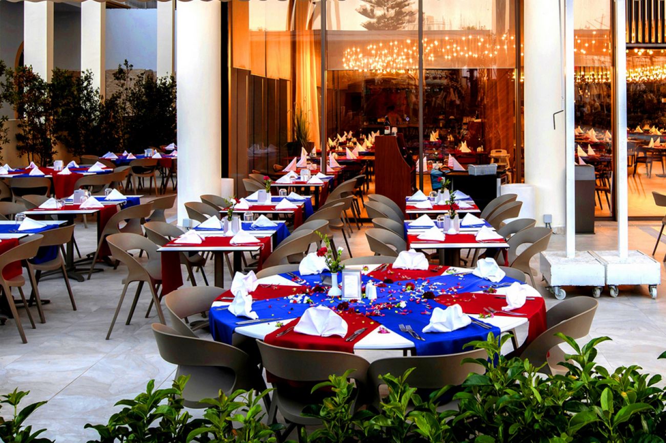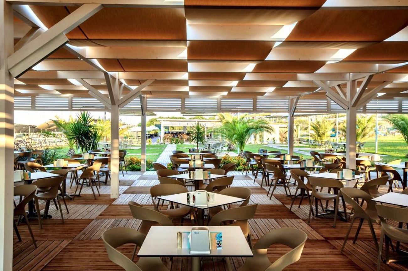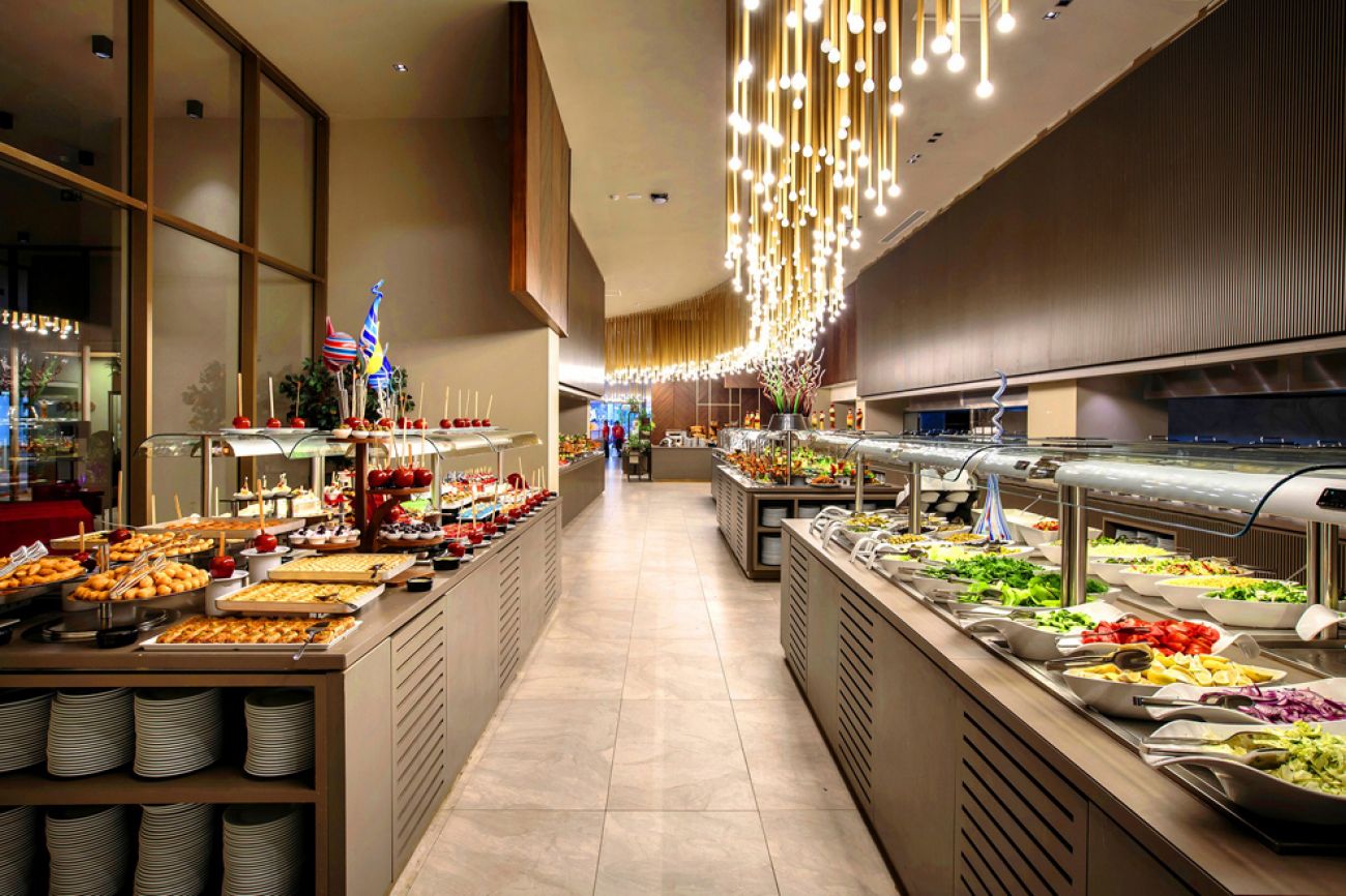 На разположение на гостите са основен ресторант Space и 2 а`ла карт ресторанта: AKDENIZ: - рибен ресторант и GUSTO - турска кухня. Освежаващи напитки и закуски се поднасят в 6 бара: SOFA LOUNGE лоби бар, бар при басейна, бар на плажа, Terrace Bar, диско бар, Арена бар на плажа.