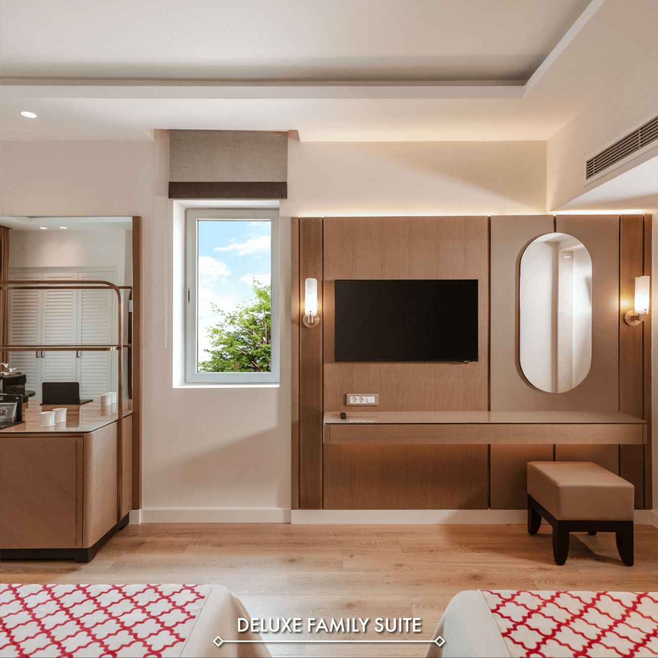 Хотелът разполага с 500 стаи. Всички стаи са оборудвани с: централен климатик, сателитна телевизия, телефон, сейф (безплатно), мини - бар (безплатно), баня с вана, сешоар, балкон. Почистване на стаите - всеки ден, смяна на спалното бельо - 3 пъти в седмицата.
