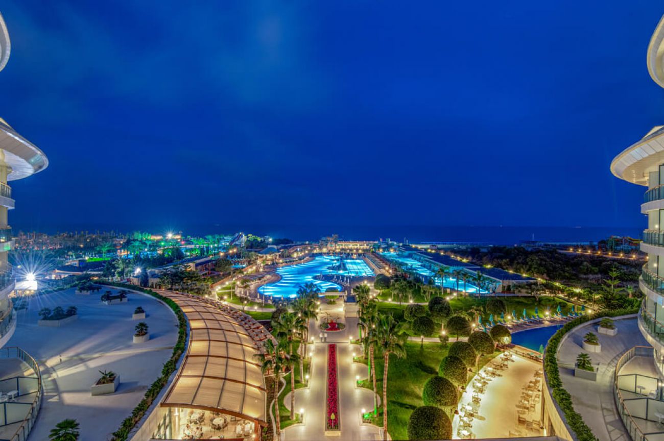 Основен ресторант, 2 а-ла-карт ресторанта (средиземноморски и стейк хаус – срещу допълнително заплащане, с преварителна резервация), 5 бара, сладкарница, 8 открити басейна, аквапарк със 9 водни пързалки, фитнес, СПА център с вътрешен басейн , магазини, 6 конферентни зали, Wi-fi интернет – на цялата територия на хотела.