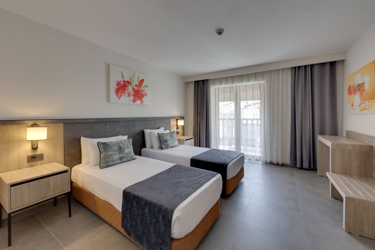 Хотелът разполага общо с 214 стаи, разположени в 7-етажна сграда от които: 166 Standard Room (19 m², гледка градина или море), 18 Family Room (38 m², с две отделни спални с врата между тях, 1 двойно и 2 единични легла) и 28 Promo Room (19 m², без балкон, приземен етаж).