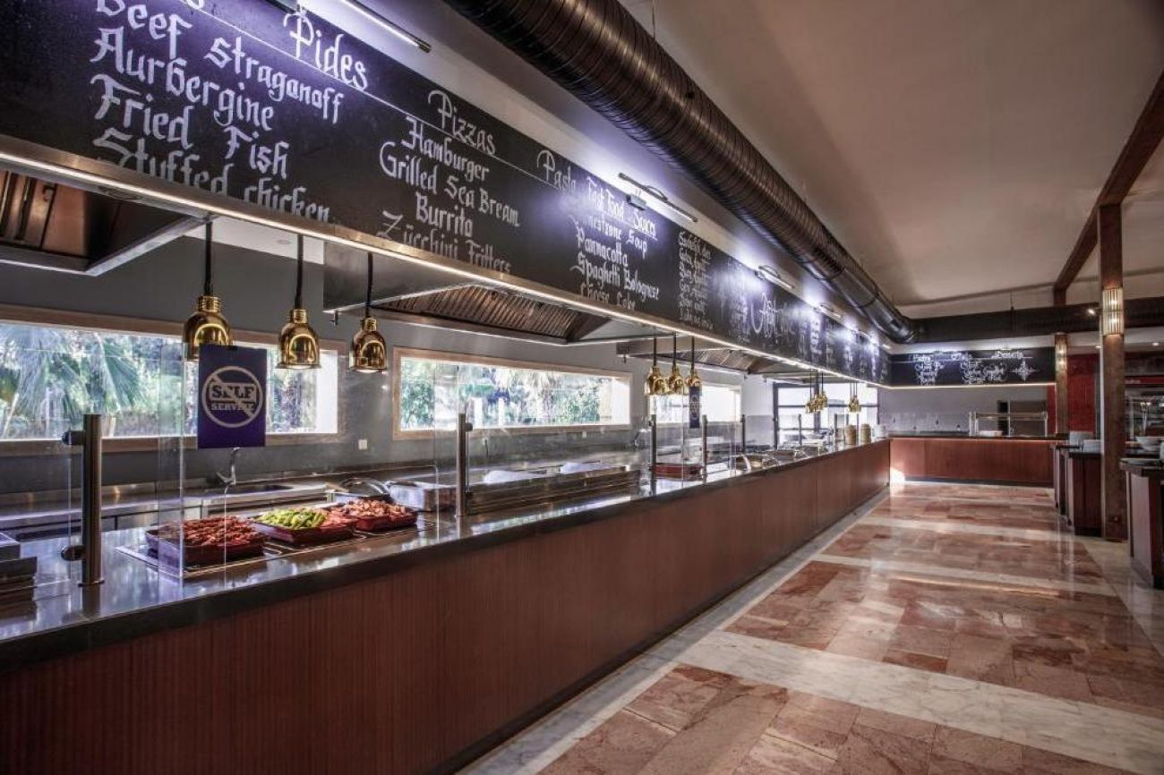 На разположение на гостите са основен ресторант и 2 а`ла карт ресторанта: İvriz Restaurant - Fish and Sea Food и Ristorante Roma. Освежаващи напитки и закуски се сервират в 8 бара. Ultra All Inclusive – закуска, обяд, вечеря и междинни хранения на блок маса; местни алкохолни и безалкохолни напитки - без лимит.
